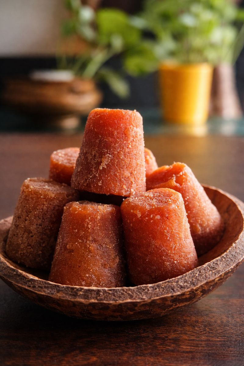 Traditional sugarcane jaggery cubes prepared using natural methods. Rich in minerals, energy-boosting and completely chemical-free.